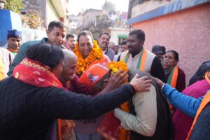 धरमपुर विधानसभा के वार्डो मै भाजपा के मेयर प्रत्याशी सौरभ थपियाल ने किया जनसम्पर्क