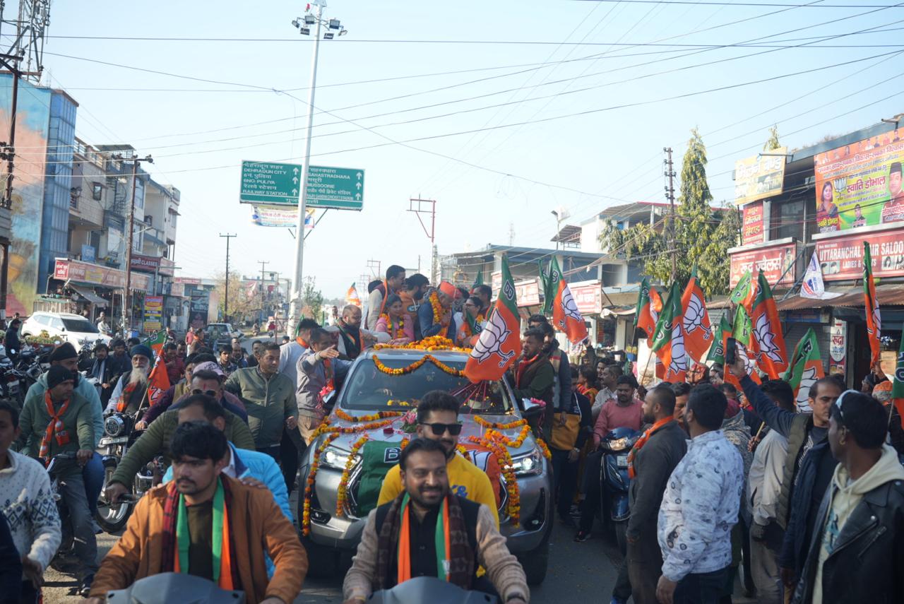 आज प्रचार के दौरान भाजपा के प्रत्याशी सौरभ थपलियाल ने वार्ड 86 नवादा में प्रत्याशी वीरेंद्र बलिया के साथ जनसभा की तत्पश्चात मियां वाला चौक पर हजारों की संख्या में महिलाओं एवं युवा वर्ग के द्वारा स्वागत अभिनंदन किया गया वहां से बाइक रैली के माध्यम से तुनवाला होते हुए रायपुर चौक रायपुर चौक से दो नाली होते हुए बालावाला गंगा फॉर्म तक हजारों की संख्या में वोट की अपील करते हुए सहभाग किया।